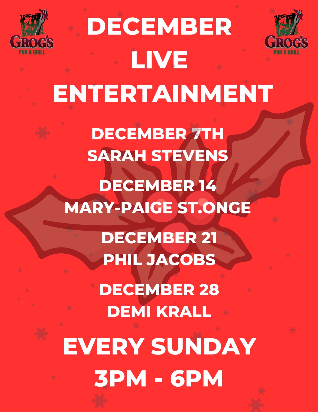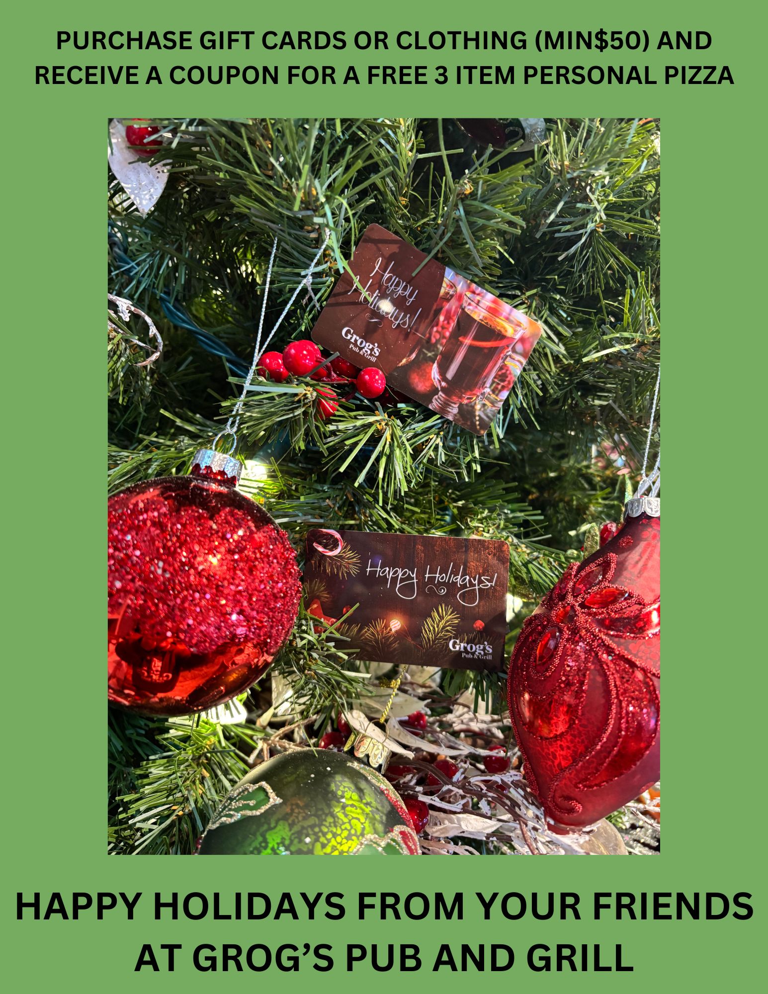 But that’s not all—there’s always something exciting happening at Grog’s! From lively weekly events like live music and game nights to seasonal visits from the Easter Bunny and Santa, we’ve got entertainment for everyone, all year round.